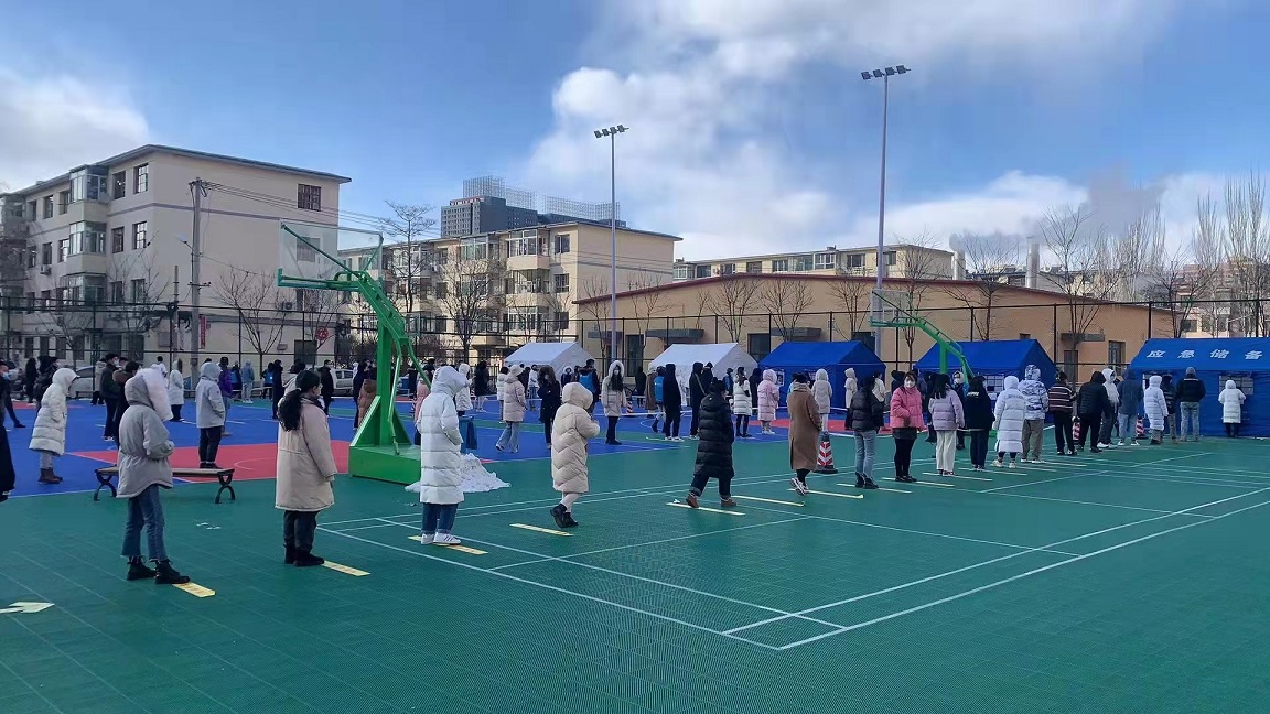 新华校区各部门分工协同,在第一次核酸检测工作基础上改进检测流程、提高秩序管理、完善防护措施,采取教工与学生分流采集、学生分批次入场等方式,确保了此次核酸检测工作高效率、高质量开展。医护人员、学生志愿者、现场工作人员合力作战,在严寒中持续工作四小时,完成校区2726份核酸采样。