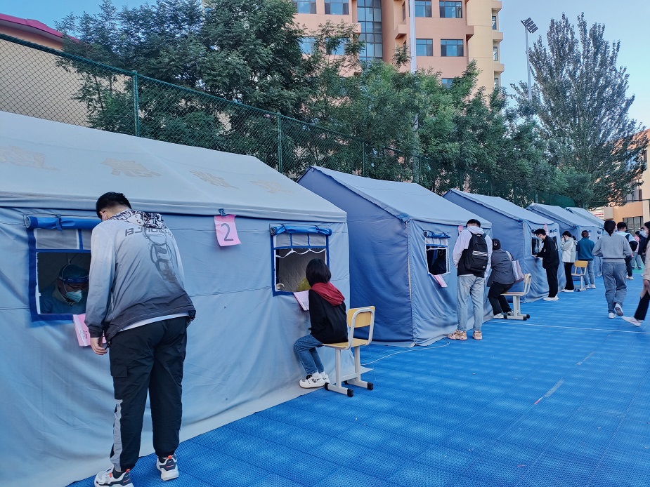 在学校新冠肺炎疫情防控工作领导小组的领导下,在学校第二附属医院的暖心助力下,8月28日、8月31日,新华校区全员核酸检测工作听令即启,全体医护人员、工作人员准时就位,不畏连绵阴雨,坚守一线岗位,以一丝不苟的工作态度,疏导队列、维护秩序,对全体在校学生、返校学生、教工以及后勤服务保障人员进行取样,取样过程井然有序、快捷流畅。8月28日历时6小时完成4944份核酸采样。8月31日,历时4个半小时完成5026份核酸采样。