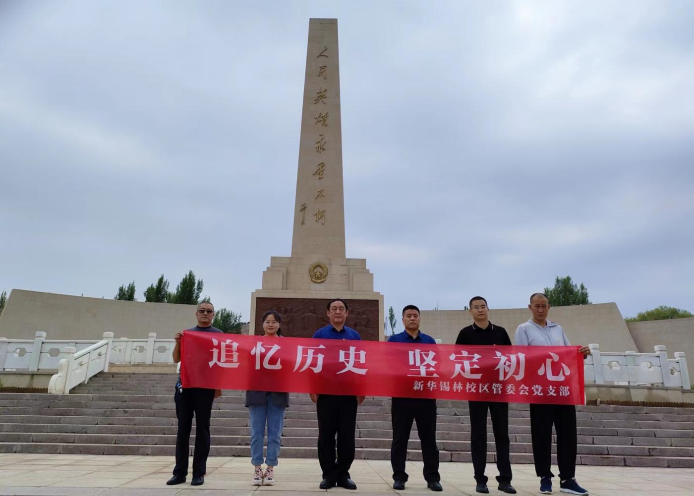 6月21日上午,新华锡林校区管委会党支部组织开展了“追忆历史,坚定初心”沉浸式主题党日活动,活动通过参观大青山红色文化公园、重温入党誓词,带领全体党员、入党积极分子追寻牺牲在内蒙古这片热土上的老一辈无产阶级革命家留下的红色足迹,感悟伟大革命精神。
