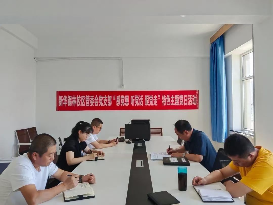 为深入学习贯彻习近平新时代中国特色社会主义思想,引导党员干部坚定理想信念、厚植家国情怀、传承红色基因,5月24日至27日,新华锡林校区管委会党支部组织开展“感党恩 听党话 跟党走——学习老党员精神,传承红色基因”特色主题党日活动,党支部全体党员、发展对象参加了活动。
