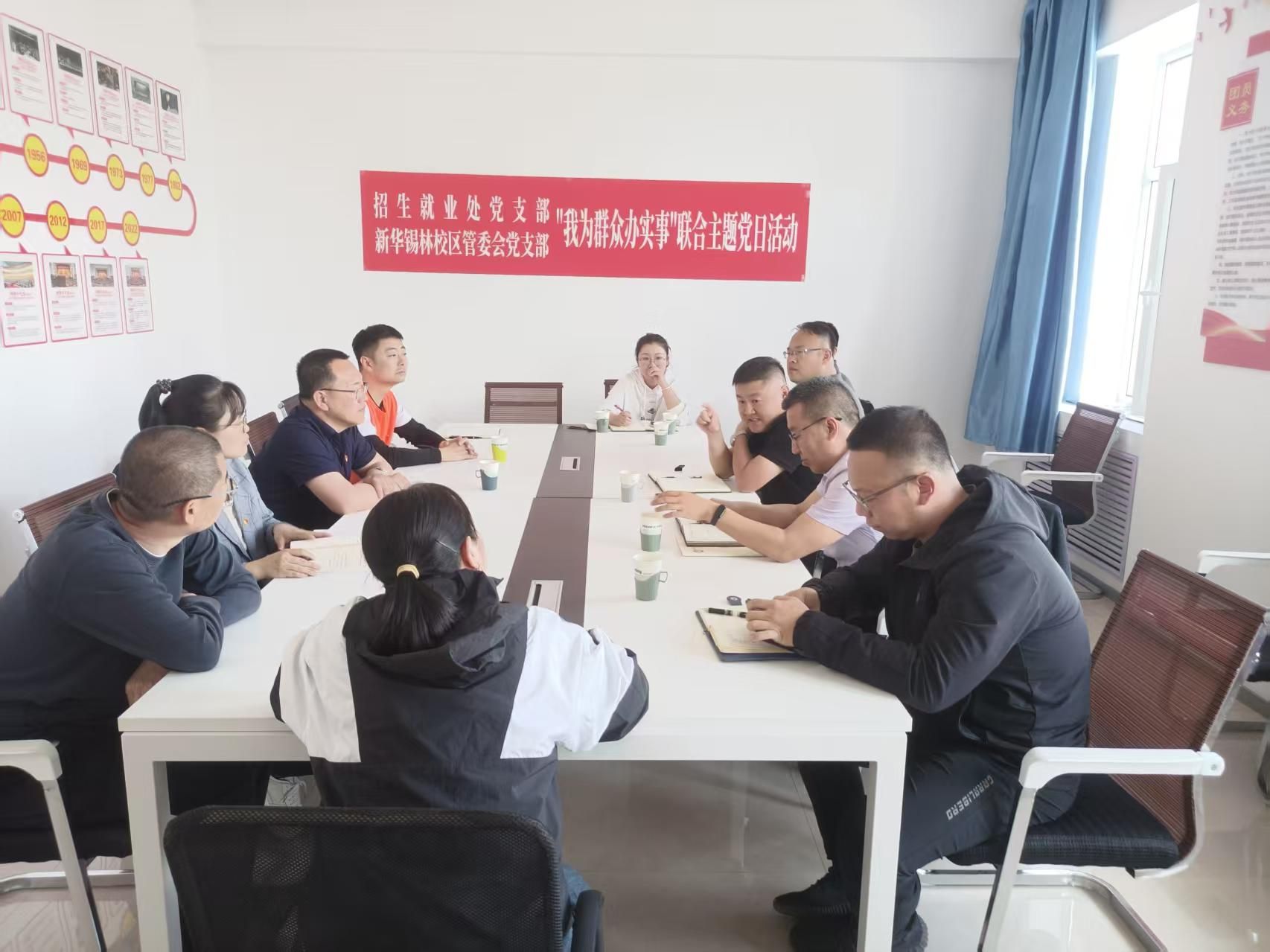 为深入贯彻落实党的群众路线,切实解决教职工实际需求,4月29日下午,新华锡林校区管委会党支部与招生就业处党支部联合开展“我为群众办实事”主题党日活动。